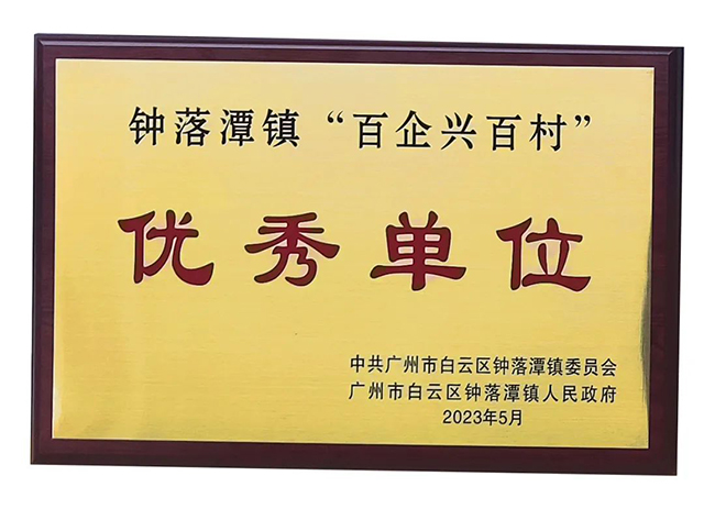 簽約儀式前,鐘落潭鎮(zhèn)向轄內(nèi)10家企業(yè)代表、5家銀行、5所高校,包括:廣州市雄星塑料制品、埃安汽車、廣東南纜電纜有限公司、廣州農(nóng)商銀行、南國商學(xué)院等代表頒發(fā)“鐘落潭鎮(zhèn)‘百企興百村'優(yōu)秀單位”榮譽牌匾。